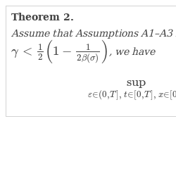 Assume that Assumptions A1–A3 hold. Then there exist versions of ${u_{\varepsilon }}$ and $\bar{u}$ such that for any $\gamma <\frac{1}{2}\Big(1-\frac{1}{2\beta (\sigma )}\Big)$, we have
