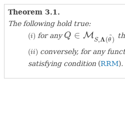 Let Q be a probability measure on Σ such that S is a Q-CRP with parameters $\boldsymbol{\Lambda }(\widetilde{\theta })$ and ${Q_{{X_{1}}}}$. Then the following are equivalent: