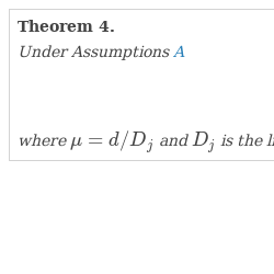 Under Assumptions A where $\mu =d/{D_{j}}$ and ${D_{j}}$ is the limit in probability of the random variable ${\hat{D}_{j}}$.