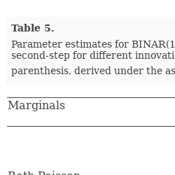 We estimated a number of BINAR(1) models with different distributions of innovations which include combinations of:
