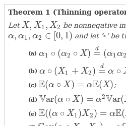 Theorem 1 (Thinning operator properties).