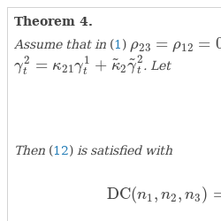 \[ \mathrm{E}\Big({e^{{\textstyle\sum _{j=2}^{3}}{\beta _{j}}{\vartheta _{T}^{j}}+\frac{{\textstyle\sum _{j=2}^{3}}{\sigma _{j}^{2}}{\vartheta _{T}^{j}}+2{\rho _{23}}{\sigma _{2}}{\sigma _{3}}\sqrt{{\vartheta _{T}^{2}}{\vartheta _{T}^{3}}}}{2}}}\Big)<\infty .\]