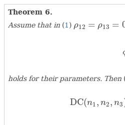 \[ \mathbb{DC}={e^{-rT}}\mathrm{E}({\mathbb{DC}_{T}})={e^{-rT}}\mathrm{E}\big({S_{T}^{3}}{S_{T}^{2}}{I_{\{{S_{T}^{1}}\ge K\}}}\big).\]