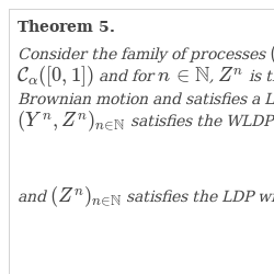 For ${y^{n}}\in {\mathcal{C}_{\alpha }}([0,1])$ let ${Z^{n,{y^{n}}}}$ denote the solution of equation (13) with y replaced by ${y^{n}}$. Then if ${y^{n}}\to y$ in ${\mathcal{C}_{\alpha }}([0,1])$, from the generalized Wentzell–Friedlin theory (Theorem 1 in [9]), we have that ${({({Z_{t}^{n,{y^{n}}}})_{t\in [0,1]}})}_{n\in \mathbb{N}}$ satisfies the same LDP in $\mathcal{C}([0,1])$ as ${({({Z_{t}^{n,y}})_{t\in [0,1]}})}_{n\in \mathbb{N}}$.