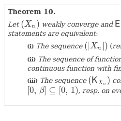Combining these inequalities, we obtain $\lim _{n\to \infty }\mathsf{r}_{{\mathbb{E}}^{n}}(u)=\mathsf{r}_{\mathbb{E}}(u)$ for $0<u<1$. Since risk functions vanish at 1, the convergence holds for $u=1$ as well.Now the converse implication (ii)$\hspace{0.2778em}\Rightarrow \hspace{0.2778em}$(i) is proved by standard compactness arguments. □