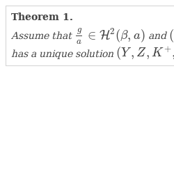 Assume that $\frac{g}{a}\in {\mathcal{H}}^{2}(\beta ,a)$ and $(H1)$–$(H6)$ hold. Then, the doubly reflected BSDE (3) with data $(\xi ,g,L,U)$ has a unique solution $(Y,Z,{K}^{+},{K}^{-})$ that belongs to $({\mathcal{S}}^{2}(\beta ,a)\cap {\mathcal{S}}^{2,a}(\beta ,a))\times {\mathcal{H}}^{2}(\beta ,a)\times {\mathcal{S}}^{2}\times {\mathcal{S}}^{2}$.