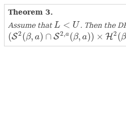 Assume that $L<U$. Then the DRBSDE (3) has a unique solution $(Y,Z,{K}^{+},{K}^{-})$ that belongs to $({\mathcal{S}}^{2}(\beta ,a)\cap {\mathcal{S}}^{2,a}(\beta ,a))\times {\mathcal{H}}^{2}(\beta ,a)\times {\mathcal{S}}^{2}\times {\mathcal{S}}^{2}$.