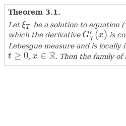 • 4) there exist a bounded function $\psi (|x|)$ and a constant $m\ge 0$ such that $\psi (|x|)\to 0$ as $|x|\to 0$ and, for all $x\in \mathbb{R}$ and $T>0$ and for any measurable bounded set B, the following inequality holds: