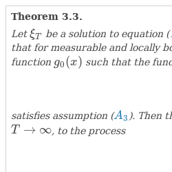 Let $\xi _{T}$ be a solution to equation (1) from the class $K(G_{T})$ and let assumptions of Theorem 3.2 hold. Assume that for measurable and locally bounded functions $g_{T}(x)$ there exists measurable and locally bounded function $g_{0}(x)$ such that the function