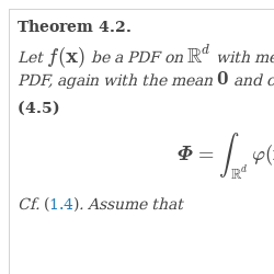 Let $f(\mathbf{x})$ be a PDF on ${\mathbb{R}}^{d}$ with mean $\mathbf{0}$ and $(d\times d)$ covariance matrix C. Let ${f}^{\mathrm{No}}(\mathbf{x})$ stand for the Gaussian PDF, again with the mean $\mathbf{0}$ and covariance matrix C. Define $(d\times d)$ matrices Cf. (1.4). Assume that