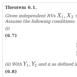 Given independent RVs $X_{1},X_{2}\in {\mathbb{R}}^{1}$ with PDFs $f_{1},f_{2}$, and the weight function φ, set $X=X_{1}+X_{2}$. Assume the following conditions: