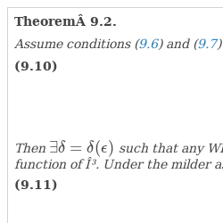 \[\begin{array}{r@{\hskip0pt}l}& \displaystyle \psi (\gamma )=\frac{d}{\mathrm{tr}\hspace{0.2778em}J_{\varphi }(\mathbf{Z})}+o(\delta ).\\{} & \displaystyle \mathrm{as}\hspace{0.2778em}\hspace{0.2778em}1-\delta <\mathbb{E}\big[\varphi (\mathbf{Z})\big]<1+\delta ,\hspace{1em}\big|\mathrm{tr}\hspace{0.2778em}{J_{\varphi }^{\mathrm{w}}}(\mathbf{Z})-\mathrm{tr}\hspace{0.2778em}J(\mathbf{Z})\big|<\delta \hspace{0.2778em}\mathrm{tr}\hspace{0.2778em}J(\mathbf{Z}).\end{array}\](9.15)