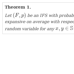 Let ρ be some metric on K. We say that an IFS with probabilities $(F,p)$ is contractive on average with respect to ρ if for any $x,y\in {\mathbb{S}}^{1}$ we have