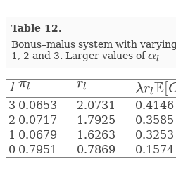We denote by $r_{l}$ the premium relativities associated with level l. The meaning is that a policyholder occupying level l pays the premium equal to $\lambda r_{l}\mathbb{E}[C]$. Note that here and below we consider only net premiums. In what follows, we assume that $\mathbb{E}[C]<\infty $ and the distribution function $F_{C}$ of C is continuous.