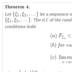 Let $\{\xi _{1},\xi _{2},\dots \}$ be a sequence of independent random variables (r.v.s) with distribution functions (d.f.s) $\{F_{\xi _{1}},F_{\xi _{2}},\dots \}$, and let η be a counting r.v., that is, an integer-valued, nonnegative, and nondegenerate at zero r.v. In addition, suppose that the r.v. η and r.v.s $\{\xi _{1},\xi _{2},\dots \}$ are independent.
