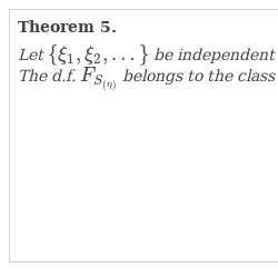 It is worth noting that the closure properties for d.f.s $F_{S_{(\eta )}}$ in the case of i.i.d. r.v.s can be derived, for instance, from the asymptotic formulas obtained in [9, 13, 17, 18, 21]. Unfortunately, in the case of nonidentically distributed r.v.s, similar asymptotic formulas do not exist. Therefore we have to use other methods to prove our main results.