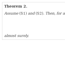 Assume (S1) and (S2). 1. If $\alpha \in (0,1)$, then there is $\varOmega _{0}\in \mathcal{F}$, $\mathsf{P}(\varOmega _{0})=1$, such that, for all $\omega \in \varOmega _{0}$ and $\theta \in \mathcal{D}({\mathbb{R}}^{2}\times \mathbb{R}_{+})$, Eq. (4) holds. 2. If $\alpha \in [1,2)$, then, for any $\theta \in \mathcal{D}({\mathbb{R}}^{2}\times \mathbb{R}_{+})$, Eq. (4) holds almost surely.