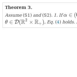almost surely. Therefore, by the Kolmogorov theorem the series for $L(\theta )$ converges $\mathsf{P}_{g}$-almost surely for almost all $\omega _{\xi }\in \varOmega _{\xi }$ and $\omega _{\varGamma }\in \varOmega _{\varGamma }$ and, therefore, $\mathsf{P}$-almost surely. The almost sure convergence of $R(\theta )$ is shown in a similar way.Now we prove that Eq. (4) holds for partial sums of the LePage series; the argument does not depend on the value of α. The counterpart of Eq. (4) for the partial sums reads as for all $\tau \ge 0,y\in {\mathbb{R}}^{2}$.