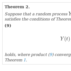 It was shown in [5] that any centered second-order wide-sense stationary process $X(t)$ that has the spectral density satisfies the conditions of Theorem 1. The process $Y(t)=\exp \{X(t)\}$ can be represented as product (9), and therefore the class of processes that satisfy the conditions of Theorem 2 is wide enough.