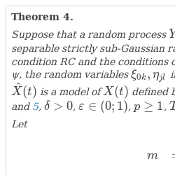 and $x_{m}$ be the root of the equation If then the model $\hat{Y}(t)$ defined by (10) approximates $Y(t)$ with given accuracy δ and reliability $1-\varepsilon $ in $L_{p}([0,T])$.