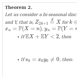 • • If $\mathbb{E}X+\mathbb{E}Y<2$, then