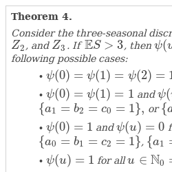 We say that the insurer’s surplus $W_{u}(n)$ follows the three-seasonal risk model if $W_{u}(n)$ is given by Eq. (1) for each $n\in \mathbb{N}_{0}$ and the following assumptions hold:
