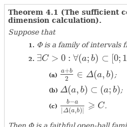 and Since $[0;1]\subset {\mathbb{R}}^{1}$, it follows that and Using we obtain that Φ is a faithful open-ball family for the packing dimension calculation. □5 Sufficient conditions for $\tilde{Q}$-expansion cylindric interval family to be faithful