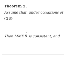 A random variable $\widehat{\theta }=(\widehat{\theta _{1}},\dots ,\widehat{\theta _{q}})$ is called MME for θ by the observations (1)