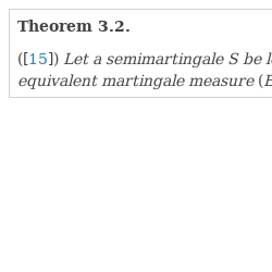 Questions of existence of equivalent (local) martingale measures are investigated in different frameworks and different generality in [3, 5, 8, 17]. Often, after specifying the model, the authors state that a risk-neutral measure exists and continue investigation in the risk-neutral world without defining the measure.
