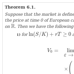 If $\bar{\sigma }_{0}\in {L}^{2}(\mathbb{R})$, then the limit in Theorem 6.1 may be moved inside the integrals. Thus, ϵ may be equated to zero, and the expression for the option price is simplified.