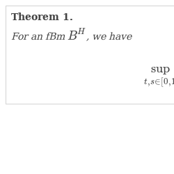 \[ \underset{t,s\in [0,1]}{\sup }\frac{|{B}^{H}(t)-{B}^{H}(s)|}{|t-s{|}^{H}|\log (t-s){|}^{1/2}}<\infty \hspace{0.1667em}\textit{almost surely.}\]