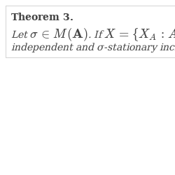 Let $\sigma \in M(\mathbf{A})$. If $X=\{X_{A}:A\in \mathbf{A}\}$ is a set-indexed square-integrable outer-continuous process with independent and σ-stationary increments, then X has s.i.v.