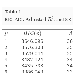 AIC 3641.074 BIC 3646.096