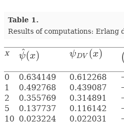 So the function $\varphi (x)$ defined by (2) satisfies all the natural properties of the survival probability. In particular, this function is nondecreasing and bounded by 0 from below and by 1 from above.It is well known that even for the classical risk model, there are only a few cases where an analytic expression for the survival probability can be found. So numerous approximations have been considered and investigated for the classical risk model (see, e.g., [1, 2, 4, 5, 7, 11]). “Simple approximations” form a special class of approximations for the ruin or survival probabilities. They use only some moments of the distribution of claim sizes and do not take into account the detailed tail behavior of that distribution. Such approximations may be based on limit theorems or on heuristic arguments. The most successful “simple approximation” is certainly the De Vylder approximation [5], which is based on the heuristic idea to replace the risk process with a risk process with exponentially distributed claim sizes such that the first three moments coincide (see also [7, 11]). This approximation is known to work extremely well for some distributions of claim sizes. Later, Grandell analyzed the De Vylder approximation and other “simple approximations” from a more mathematical point of view and gave a possible explanation why the De Vylder approximation is so good (see [8]).