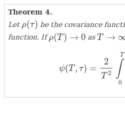 Consider Since $\hat{\rho }(\tau )-\rho (\tau )$ is a square Gaussian stochastic process (see Lemma 3.1, Chapter 6 in [3]), it follows from Theorem 2 that