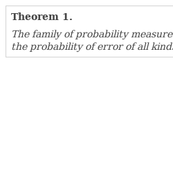 The family $\{\mu _{i},\hspace{2.5pt}i\in I\}$ of probability measures is called separable if there exists a family of S-measurable sets $\{X_{i},\hspace{2.5pt}i\in I\}$ such that the relations are fulfilled: