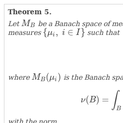 \[\int _{E}I_{X_{i}}(x)\hspace{0.1667em}\mu _{H_{i}}(dx)=l_{I_{X_{i}}}(\mu _{H_{i}})=\| \mu _{H_{i}}\| _{M_{\beta }(\mu _{H_{i}})}.\]