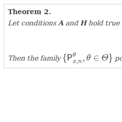 • 1. Statistical experiment (2) is regular for every $x\in \mathbb{X}$ and $n\ge 1$ and $I_{n}(\theta _{0})>0$ for large enough n.