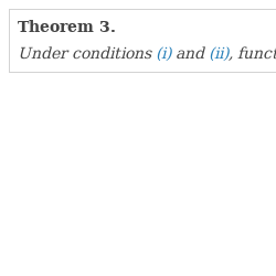 - (3) $\int _{{0}^{+}}{H}^{\frac{1}{2}}(\varTheta _{-},u)\hspace{0.1667em}\mathrm{d}u<\infty $, where H is ε-entropy on $(\varTheta _{-},\rho )$, i.e. $H(\varTheta _{-},u)=\log _{2}N(\varTheta _{-},u)$, where N is a minimal number of balls with diameter not exceeding $2\varepsilon $ that cover $\varTheta _{-}$.