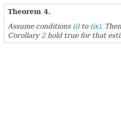 and due to conditions (iii) and (iv), condition (2) is also satisfied. Thus, lemma is proved. □Returning to inequality (5.1), because $\varDelta \theta _{n}$ converges to zero a.s., one can conclude the following.