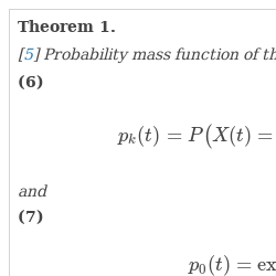 [5] Probability mass function of the process $X(t)={N_{1}}({G_{N}}(t))$, $t>0$, is given by