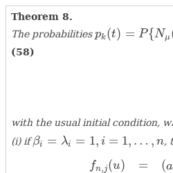 \[ \frac{d}{dt}{p_{k}^{E}}(t)=-\lambda \frac{{\lambda _{1}}}{{\lambda _{1}}+\beta }{p_{k}^{E}}(t)+\frac{\lambda \beta }{{\lambda _{1}}+\beta }{\sum \limits_{m=1}^{k}}{\bigg(\frac{{\lambda _{1}}}{{\lambda _{1}}+\beta }\bigg)}^{m}{p_{k-m}^{E}}(t).\]