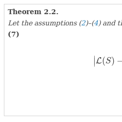 see [8]. Similar assumptions were used in [7, 21]. Observe that Franken’s condition requires almost all probabilistic mass to be concentrated at 0 and 1. Indeed, then ${\nu _{1}^{+}}({F_{j}})<1$ and ${F_{j}}\{1\}\geqslant {\sum _{k=3}^{\infty }}k(k-2){F_{j}}\{k\}$. Meanwhile, Theorems 2.1 and 2.2 hold under much milder assumptions and, as demonstrated in the example below, can be useful even if (8) is not satisfied. Therefore, even for the case of one sum when $N=1$, our results are new.
