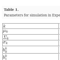 Then the set of all unknown parameters $\tau =({\mathbf{b}}^{k},\beta ,\vartheta )$ consists of and Here ${\mathbf{b}}^{k}$ is our parameter of interest, β and ϑ are the nuisance parameters.