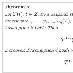 Let $Y(t)$, $t\in Z$, be a Gaussian stationary process with a spectral density $f(\lambda )\in L_{p}(\varLambda )$, and let the functions $\varphi _{1},\dots ,\varphi _{m}\in L_{q}(\varLambda )$, where $1\le p,q\le \infty $, be such that $\frac{1}{q}+\min \{k_{i}\}\frac{1}{p}=\frac{1}{2}$. Suppose also that Assumption H holds. Then