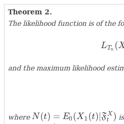 The following result establishes the way MLE for the drift parameter θ can be calculated. The proof of the theorem is the same as the proof of the corresponding statement from [6], so we omit it.