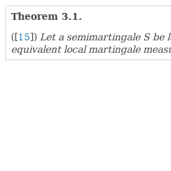 Questions of existence of equivalent (local) martingale measures are investigated in different frameworks and different generality in [3, 5, 8, 17]. Often, after specifying the model, the authors state that a risk-neutral measure exists and continue investigation in the risk-neutral world without defining the measure.