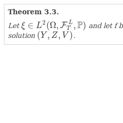 where $f:[0,T]\times \Omega \times \mathbb{R}\times \mathbb{R}\times {\ell ^{2}}\longrightarrow \mathbb{R}$ is a given random function, called the generator of BSDE (3.1), and ξ is an ${\mathcal{F}_{T}^{L}}$-measurable random variable. We call the pair $(f,\xi )$ the data of BSDE (3.1).