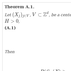 For a finite set $A\subset {\mathbb{Z}^{d}}$, define by $\partial A=\{j\in {\mathbb{Z}^{d}}\setminus A,\hspace{2.5pt}\operatorname{dist}(j,A)=1\}$ its boundary, where $\operatorname{dist}(j,A)=\inf \{\| j-x{\| _{\infty }},\hspace{2.5pt}x\in A\}$.