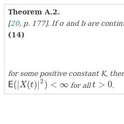 \[X_{t}=x_{0}+\underset{0}{\overset{t}{\int }}(b-X_{s})ds+\sigma \underset{0}{\overset{t}{\int }}\sqrt{X_{s}}dW_{s}.\]